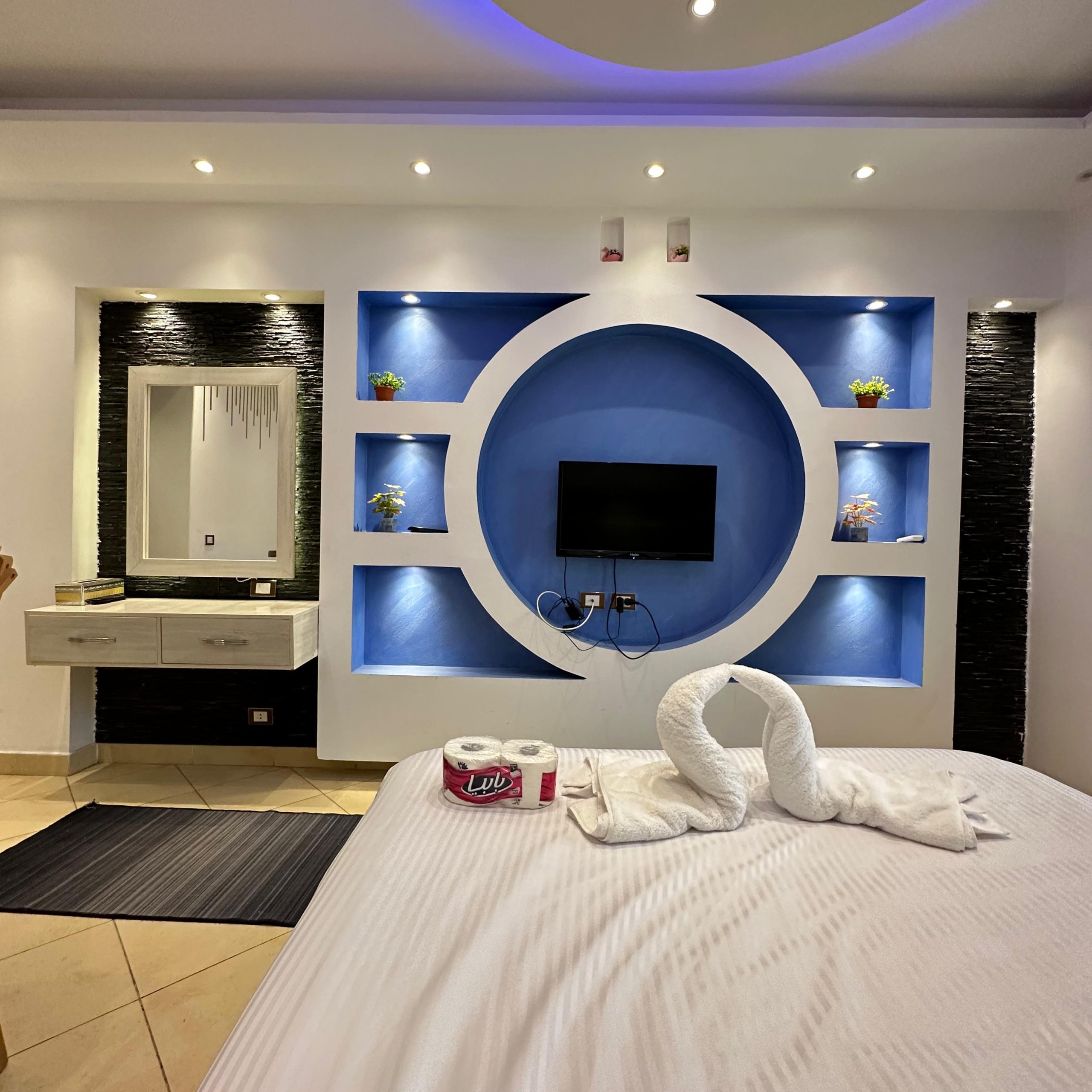 Enjoy a comfortable stay at Florenza Khamsin in this modern street-view studio, perfect for couples or solo travelers. The apartment is fully furnished with air-conditioning, a comfy bed, a fully equipped kitchen, a private bathroom, and a balcony overlooking the quiet street. Guests can relax in the peaceful courtyard, enjoy the on-site café, and stay connected with free Wi-Fi. Located just a short walk from the beach and only 10 minutes from Hurghada Airport, Florenza Khamsin offers the perfect mix of comfort and convenience for your Hurghada getaway.