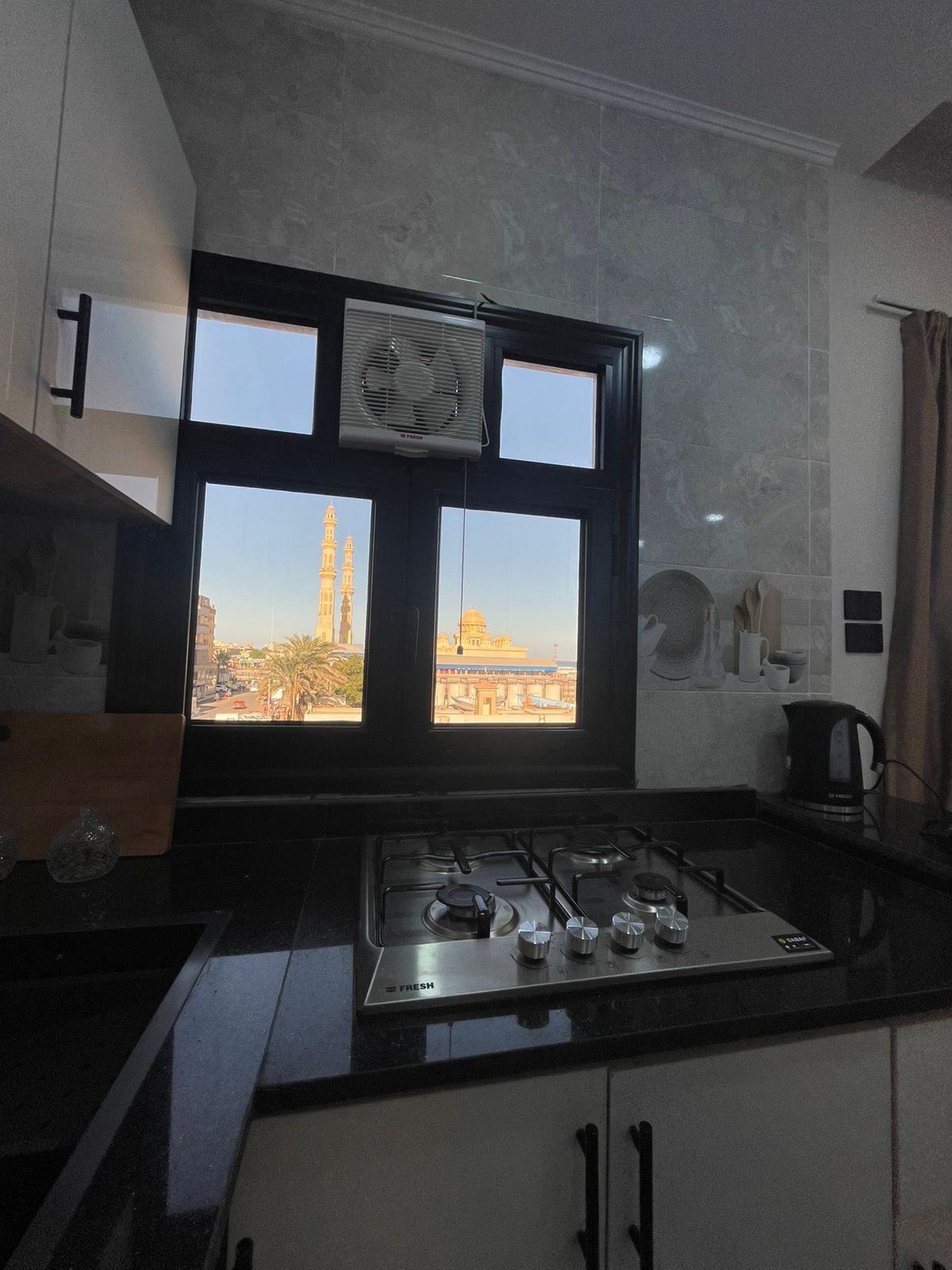Enjoy a comfortable stay at Vero Residence Hurghada, a modern residential building located on El Marina Street in the heart of downtown Hurghada. The residence offers fully sea-view units, providing a relaxing atmosphere combined with a vibrant city lifestyle just steps away from the marina, cafes, restaurants, and nightlife. This one-bedroom apartment features a unique mosque and sea view, located on fourth floor and suitable for up to 3 guests. It includes one big bed and a sofa bed, making it ideal for couples, friends, or small groups. Vero Residence is especially welcoming for groups of youth and friends looking to enjoy the lively downtown experience. Please note that the building does not include pool or beach access, making it a great choice for guests who prioritize location, views, and city living.