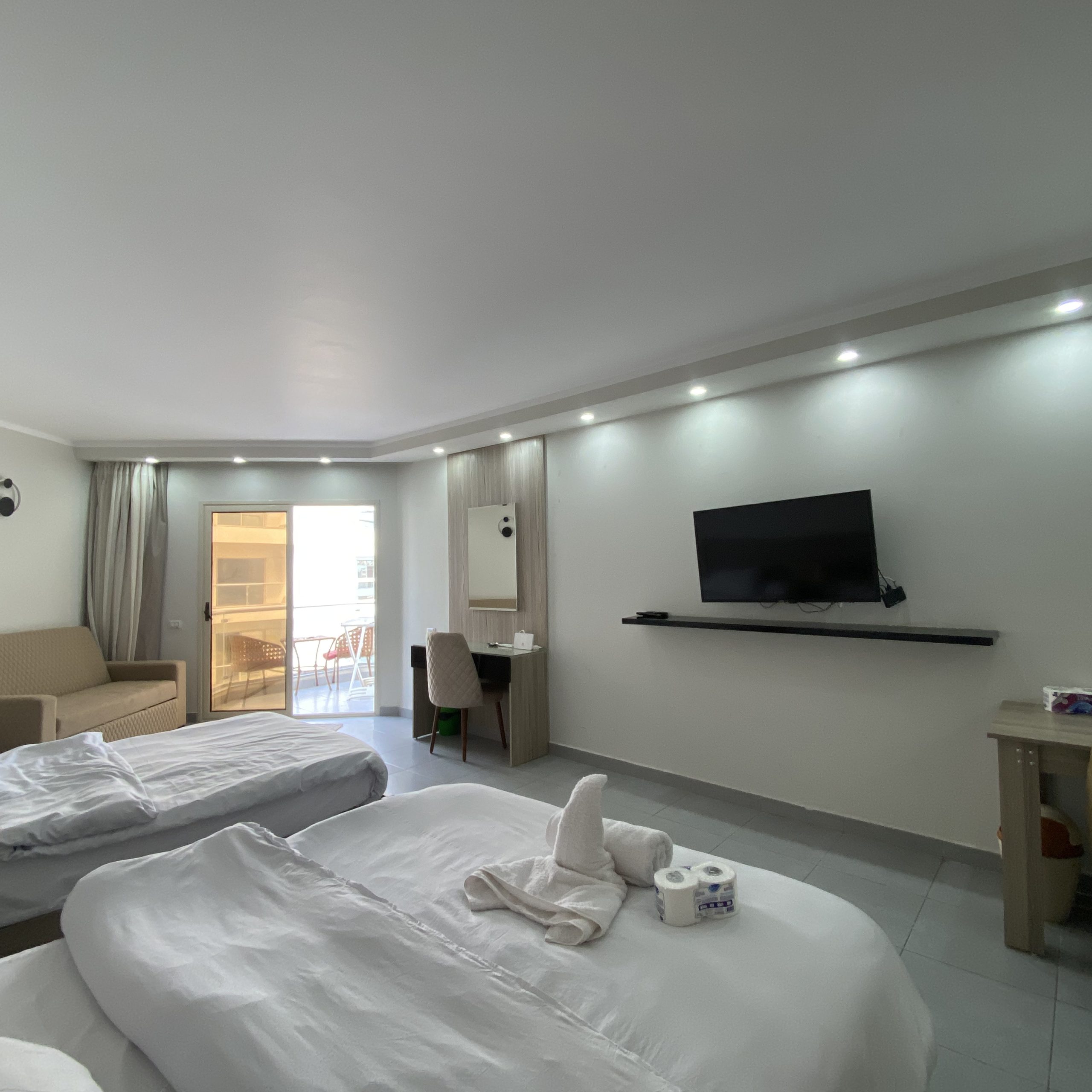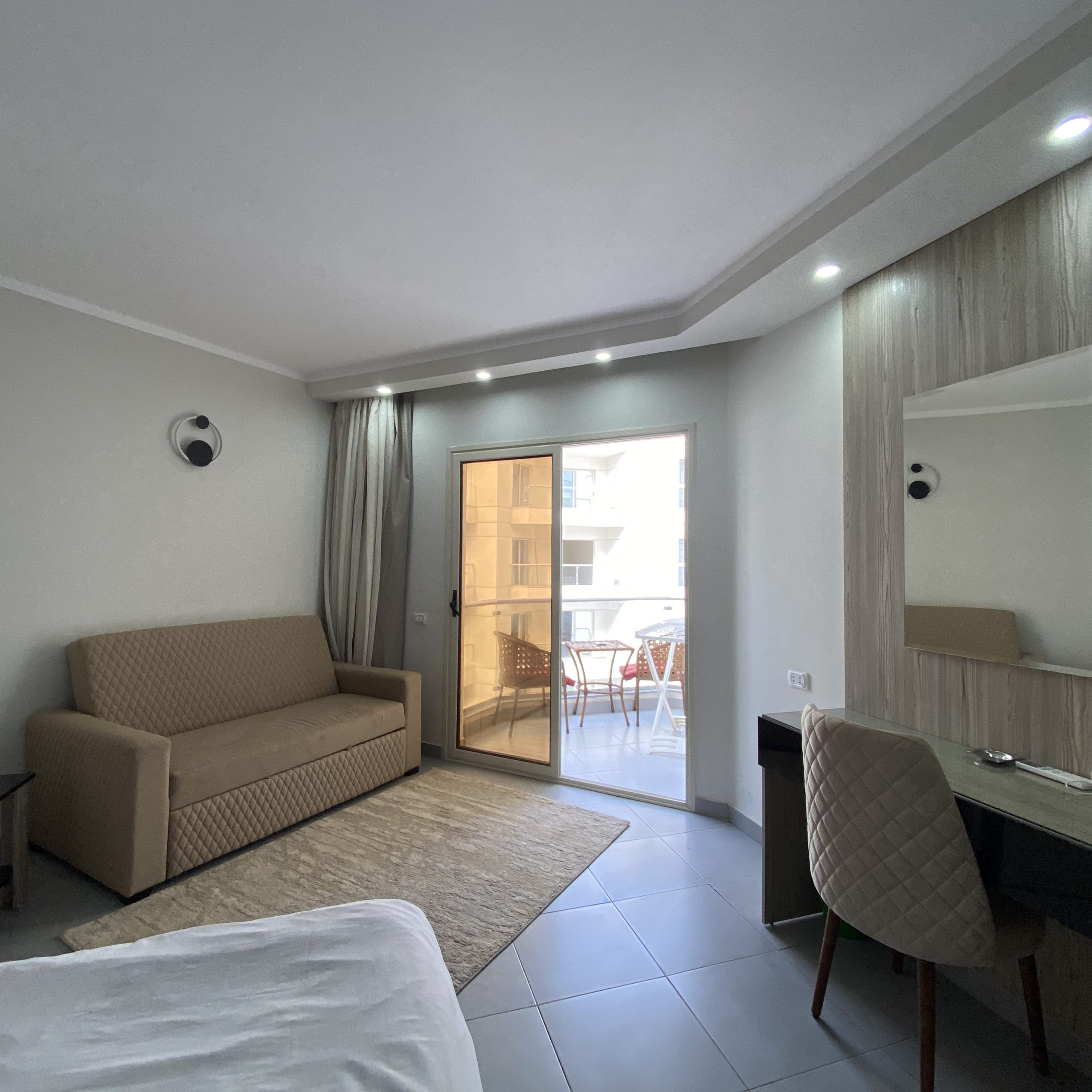 This cozy studio at Scandic Resort is perfect for couples or solo travelers. It comes fully furnished with air-conditioning, a private balcony, and a fully equipped kitchen for your convenience. Guests can enjoy 3 swimming pools, a private beach, high-speed Wi-Fi, and 24/7 security. Located only 10 minutes from Hurghada Airport, it’s a great choice for comfort and privacy.
