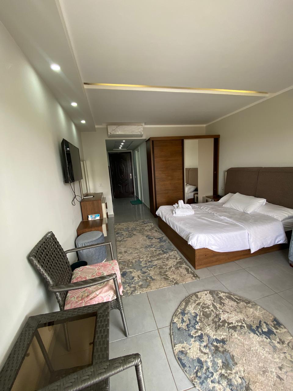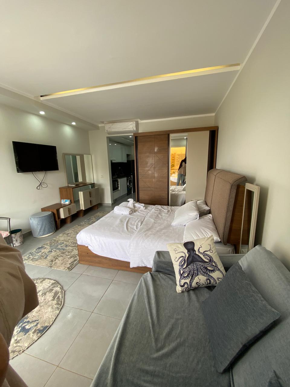 This cozy studio at Scandic Resort is perfect for couples or solo travelers. It comes fully furnished with air-conditioning, a private balcony, and a fully equipped kitchen for your convenience. Guests can enjoy 3 swimming pools, a private beach, high-speed Wi-Fi, and 24/7 security. Located only 10 minutes from Hurghada Airport, it’s a great choice for comfort and privacy.