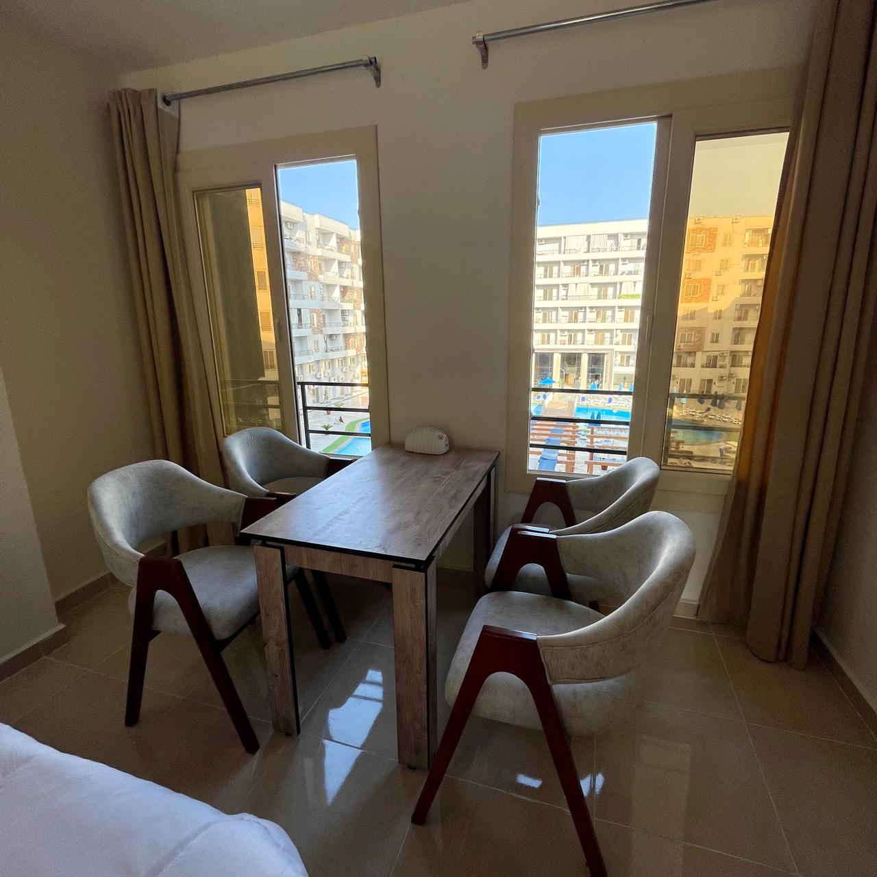 Studio with pool view at Tiba Resort Hurghada is a comfortable and modern unit designed for a relaxing stay in Hurghada.